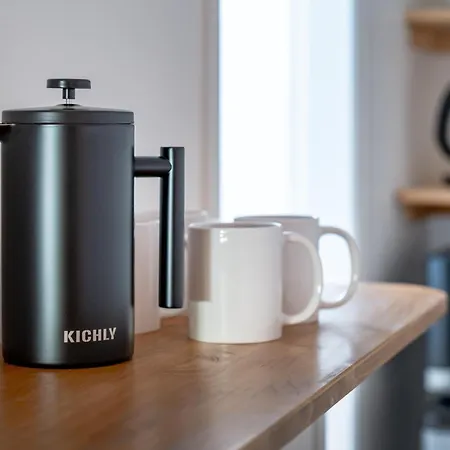 The rooms have a view over the city. Coffee and tea making equipment, a refrigerator, and an oven are included in these guestrooms.